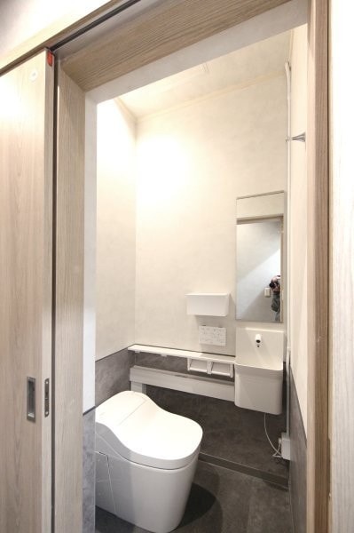 2024年1月に竣工。全体で約9坪と限られた広さの中で、天井を高くし、鏡などのアイテムを使うことで、開放的な高級感のある空間になりました。