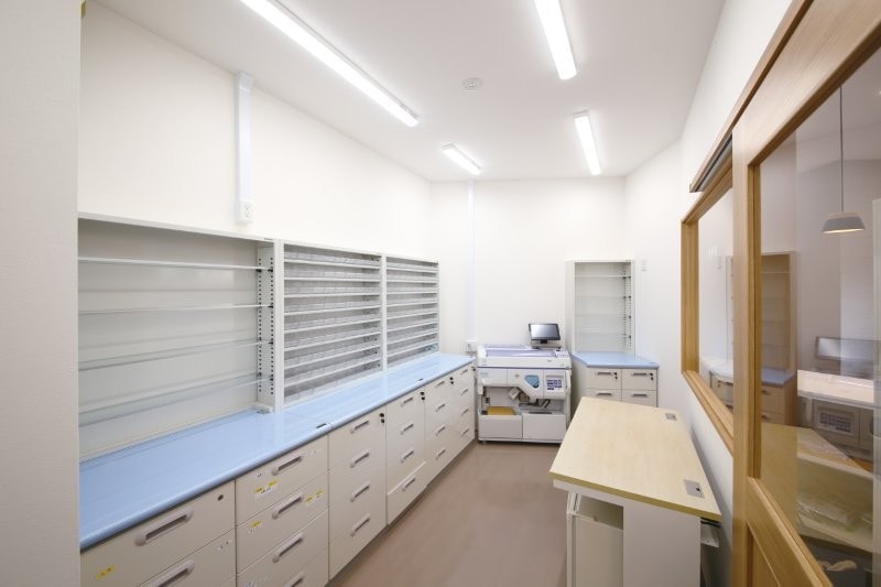 間口が狭い空間でも薬局を作ることができます。
