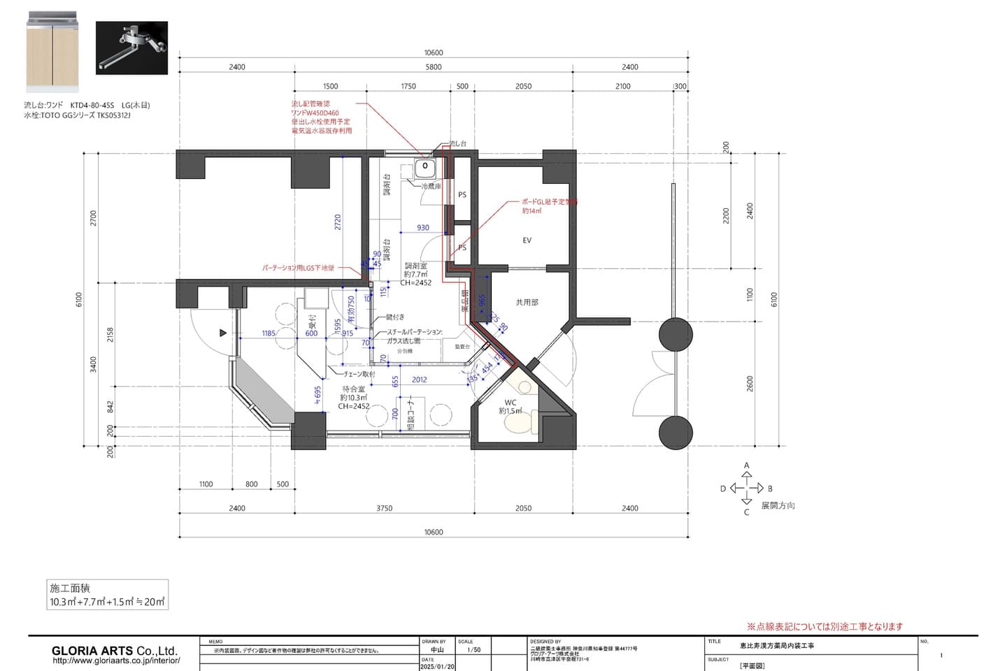 恵比寿漢方薬局様 平面図 約20㎡