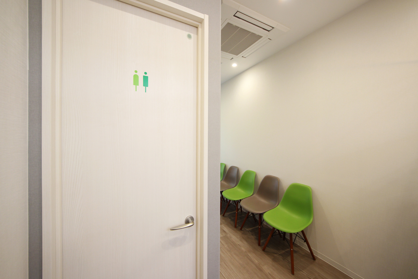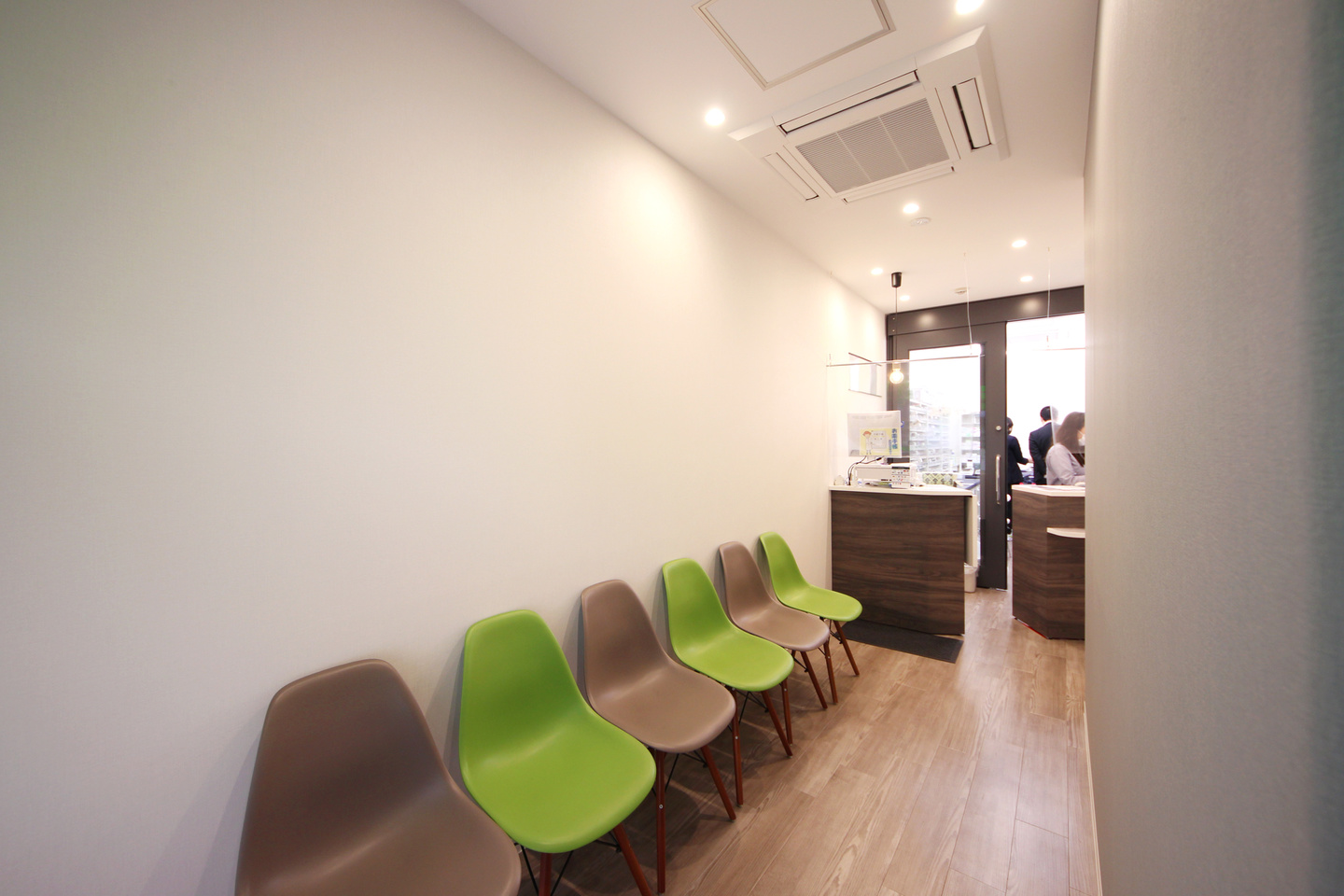 施主様からは、シックでグレイッシュな内装にしたいとご要望をいただきました。精神科の患者様も多く来られるということで、落ち着きのある、それでいて暗くなりすぎない空間になるようご提案いたしました。