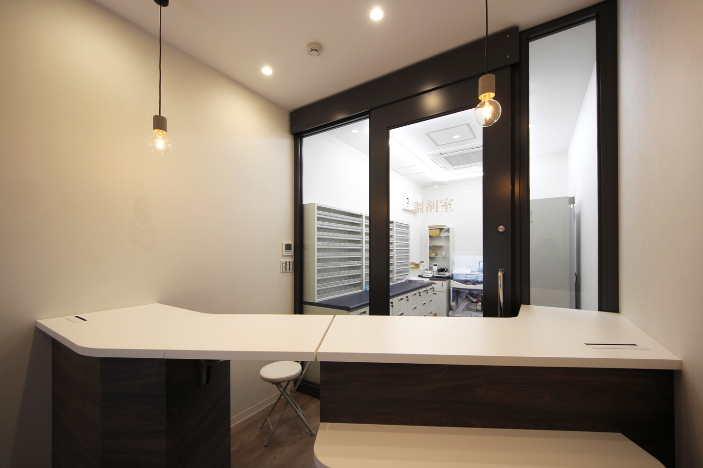 投薬カウンターも、2か所設けられたいとのことでしたので、カウンター形状を工夫し、デットスペースを活用できるようご提案いたしました。