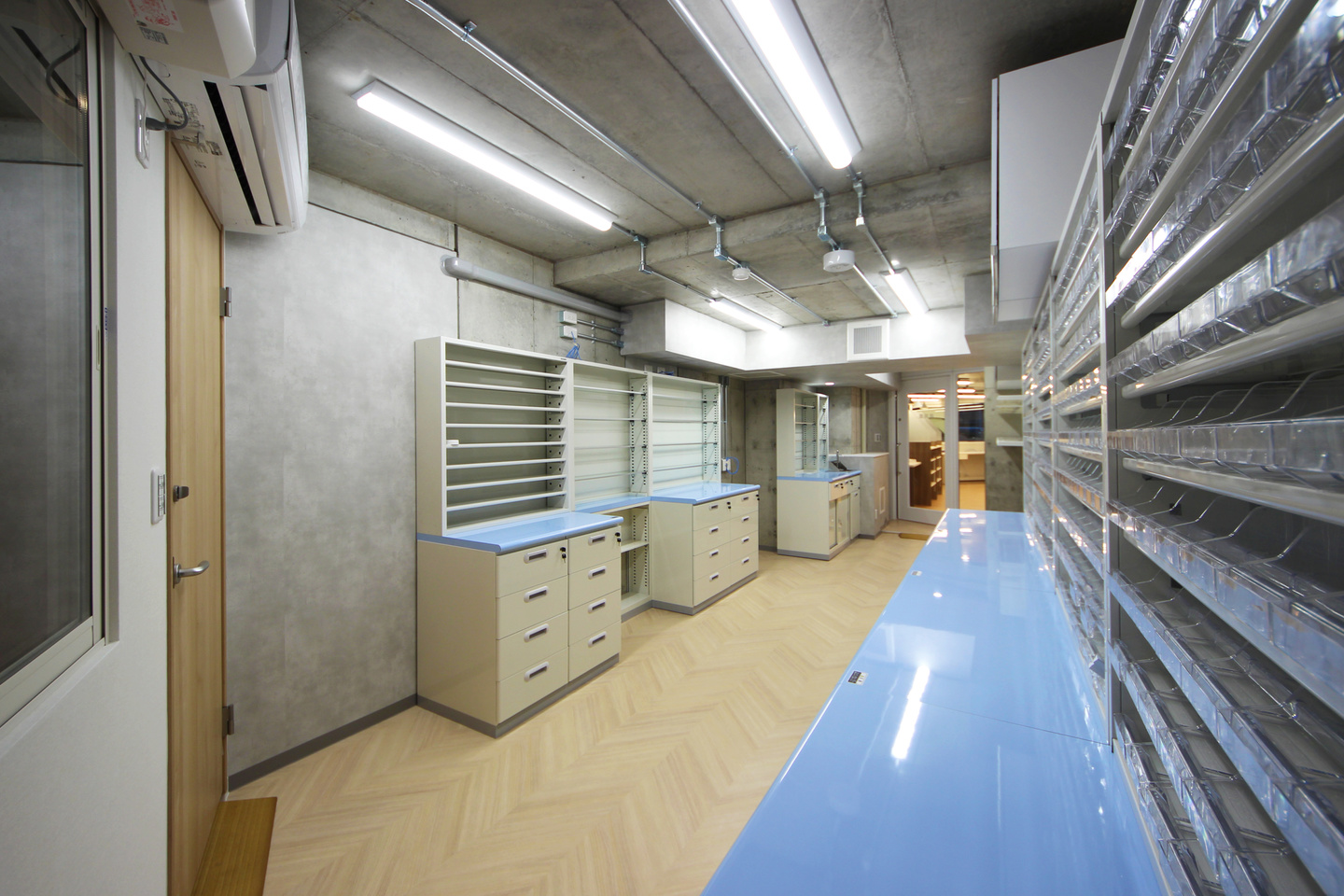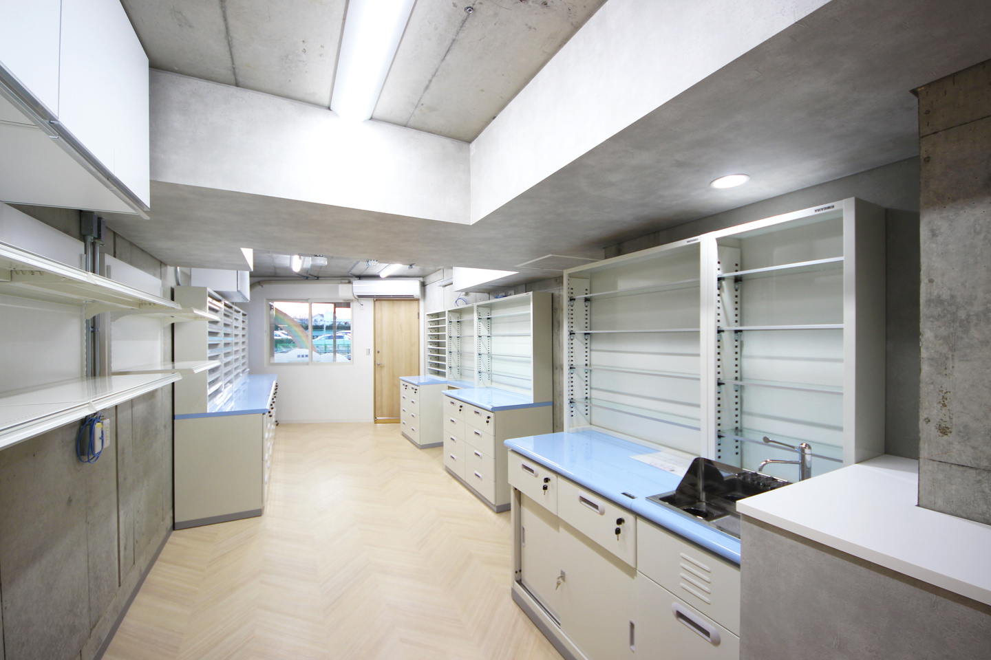 加えてコンクリート打ち放しの、天井高さも限られた、薬局としてはレイアウトが難しい物件でした。