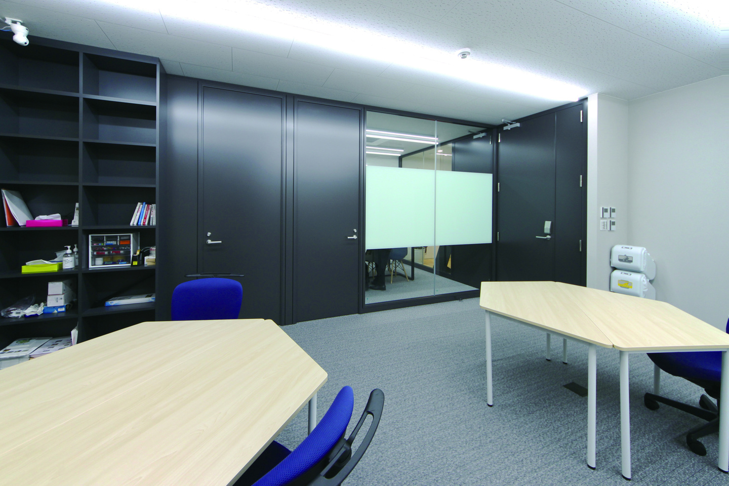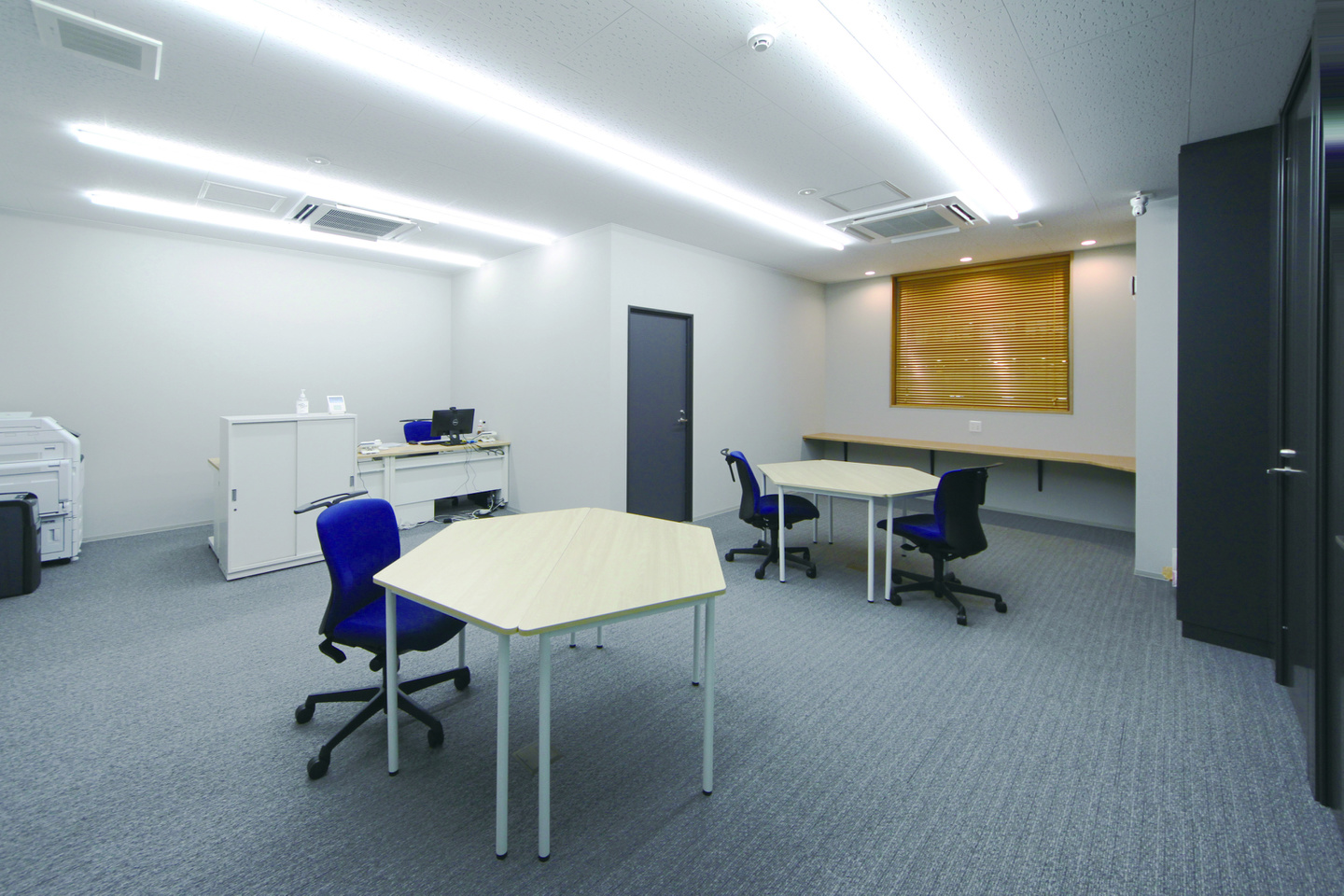 事務室はフリーアドレスを採用し、社員様の移動をスムーズに行えるよう計画しました。