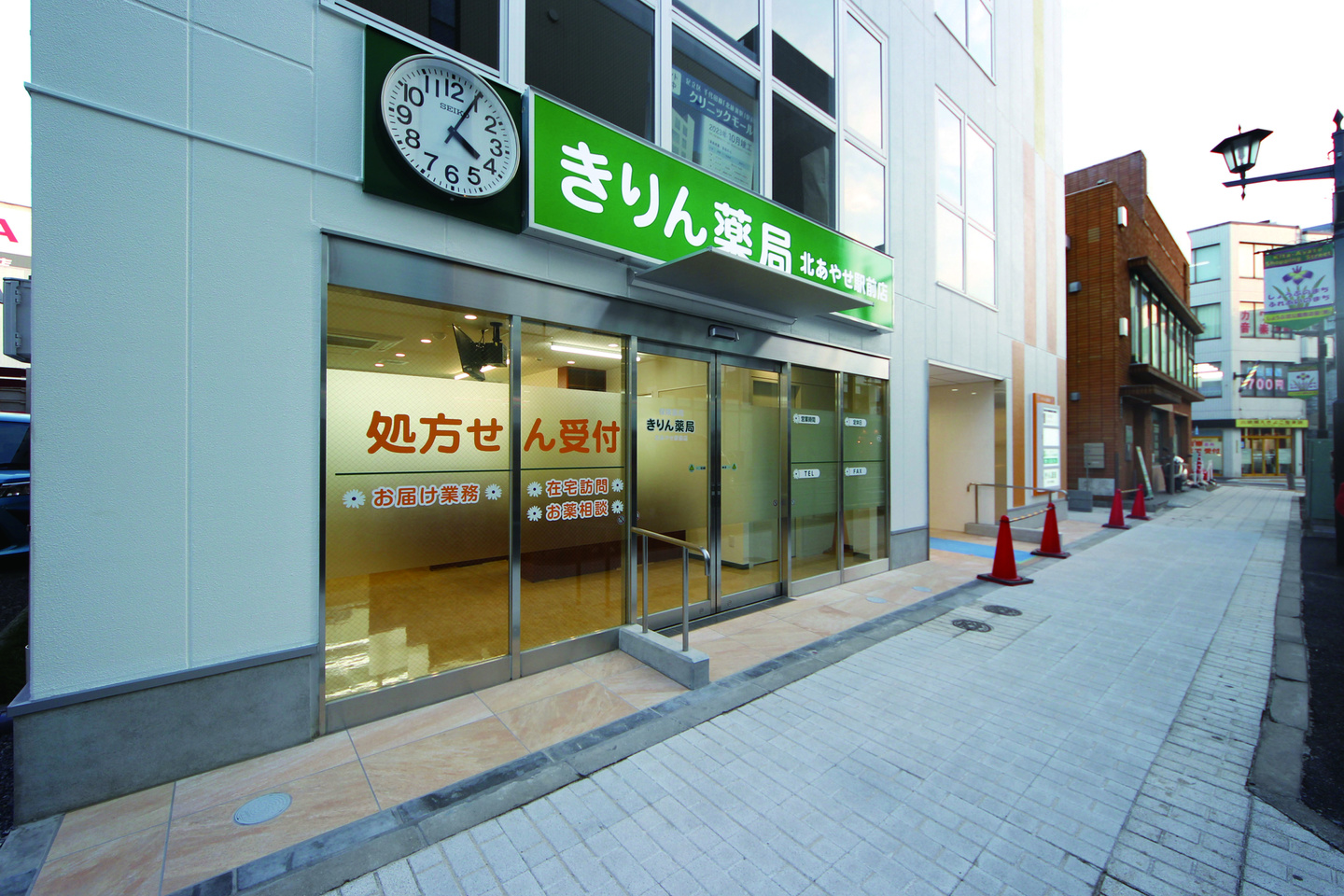 現在の店舗で統一されている薬局のイメージカラー・サイン計画を継承しつつ、新店舗ならではのオリジナリティも取り入れたいとのご要望でした。