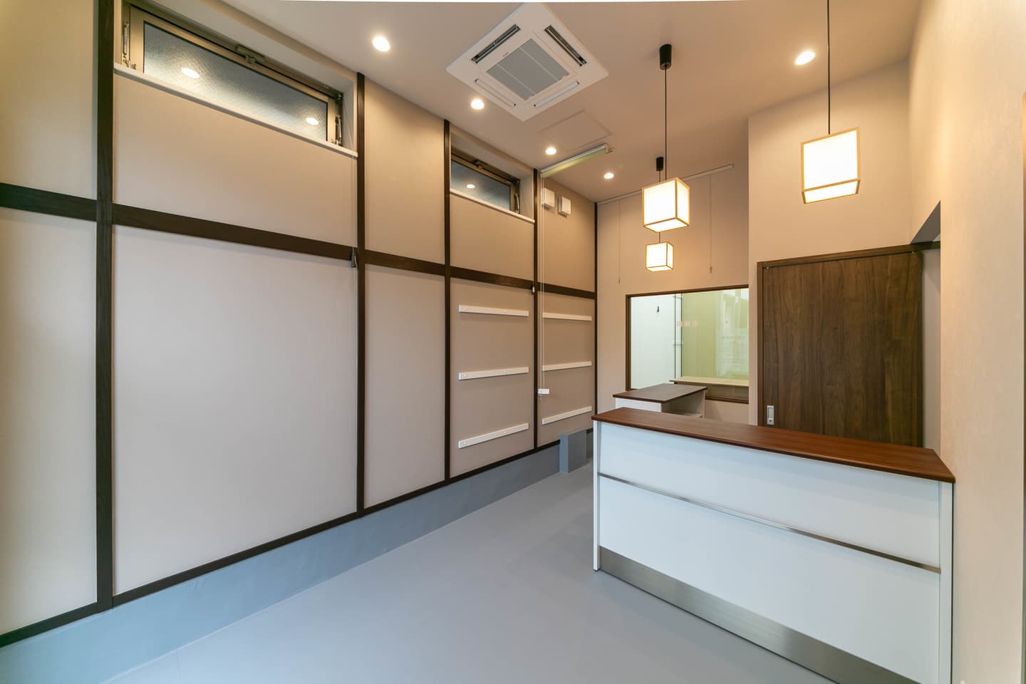 独立開業され、その第一店舗目の内装工事のご依頼を、HPにてお問い合わせいただきました。弊社HPの施工事例を拝見してくださり、ゆのまち薬局の雰囲気を取り入れた内装にしてほしいとのご要望をいただきました。