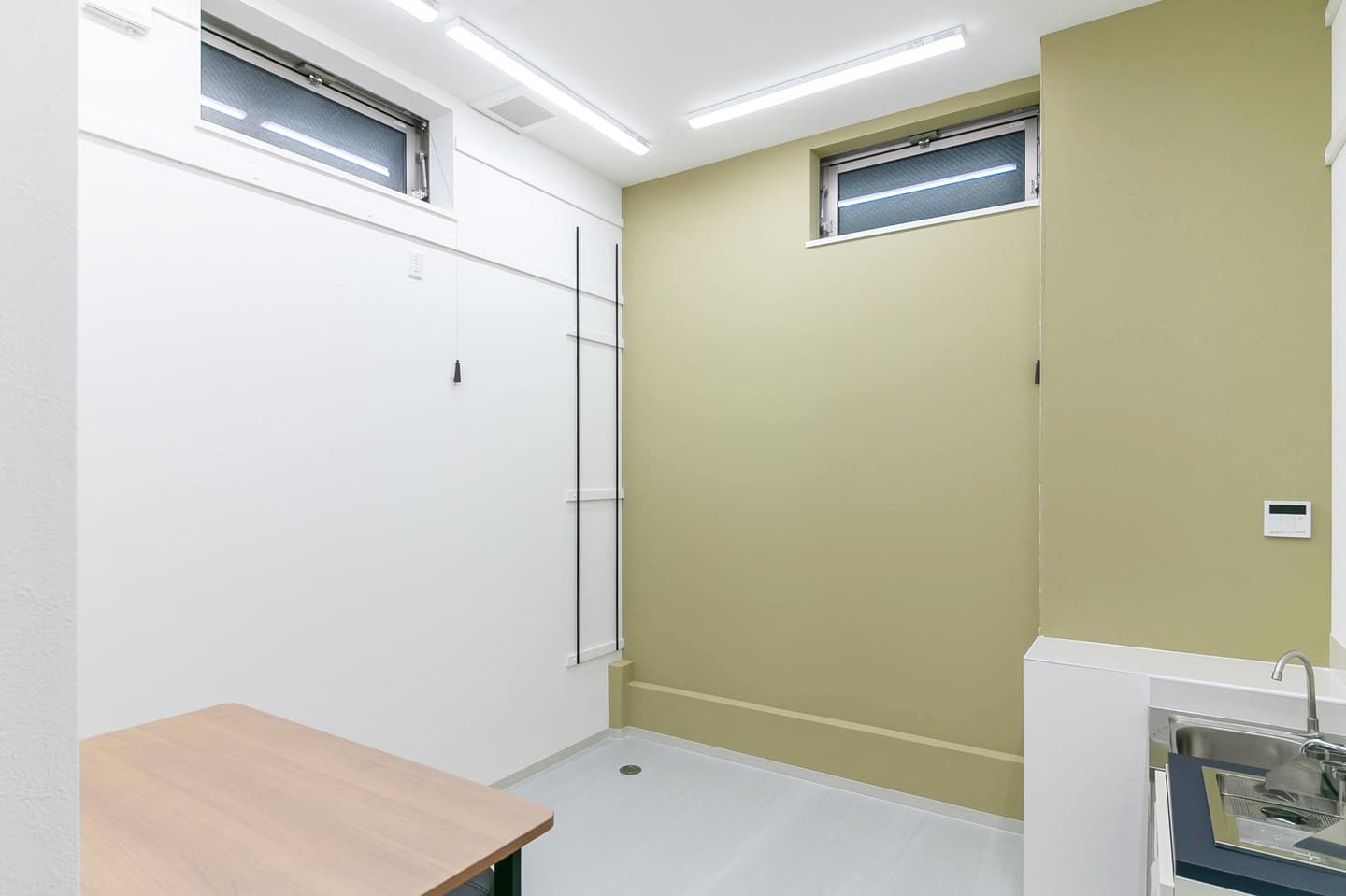 待合室の床には、土間風の仕上げになるよう、既存コンクリート床を塗装し、モダンな要素を取り入れました。