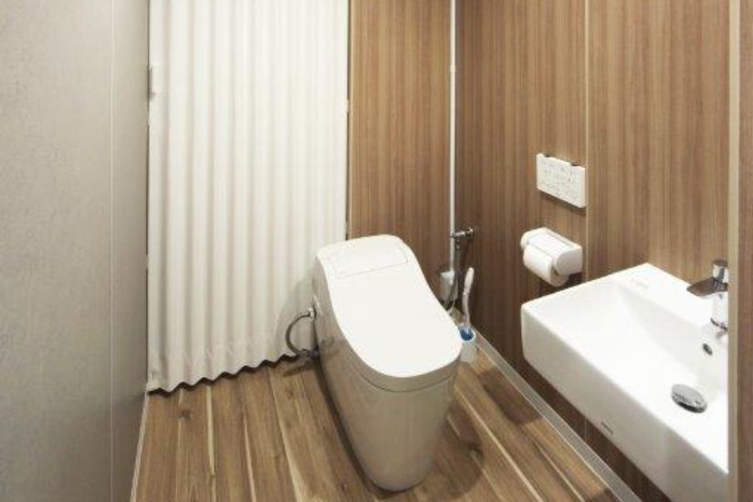 しっくい調のクロスと、節目のある木目調シートを組み合わせ、親しみやすい空間になるようご提案いたしました。