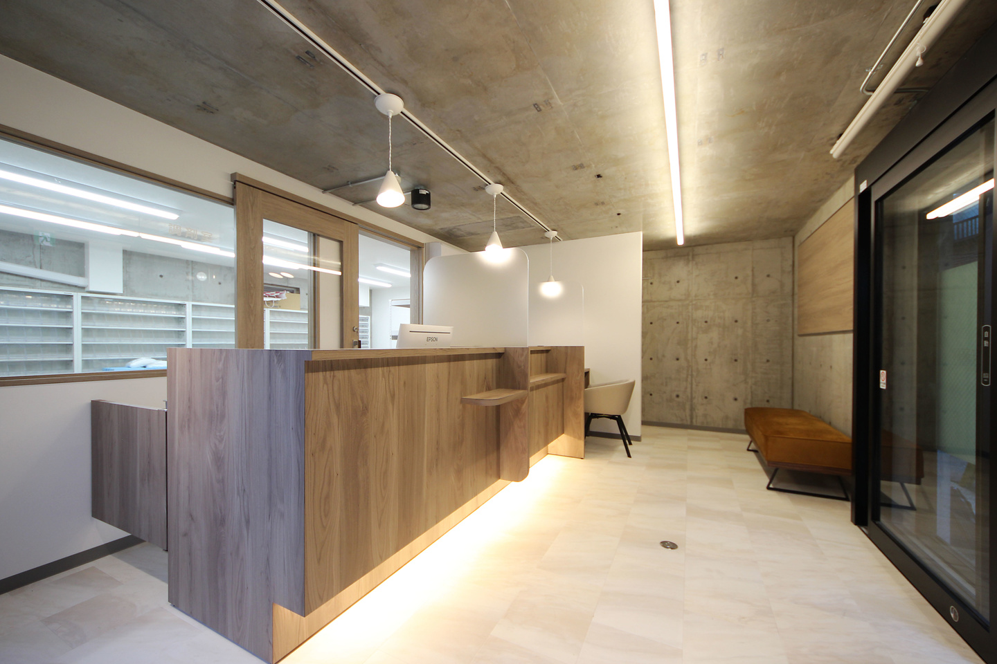 コンクリート打ち放しのデザイナーズマンションの1階テナントをご契約され、ご夫婦で独立開業のため、薬局の内装工事をご依頼いただきました。