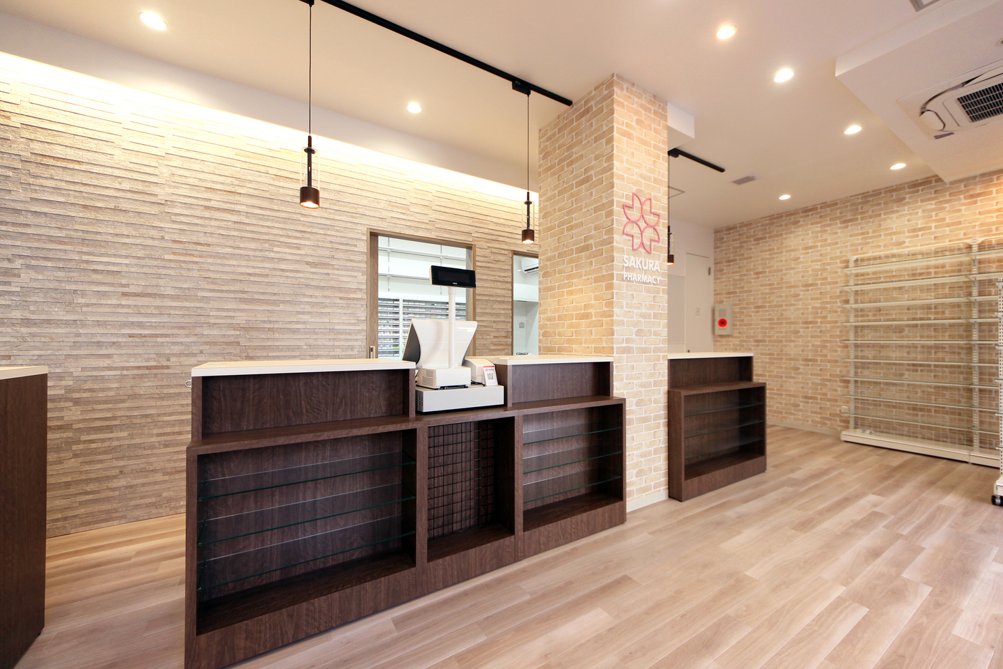 第一類医薬品を置きたいので、鍵付きガラス棚を設けたい。患者様の手の届かない、受付裏の壁面に棚が欲しい。その他医薬品・医薬部外品・雑貨等を並べるOTCラックが欲しい。など、さまざまなご要望に合わせた待合室のレイアウト・什器製作を行います。