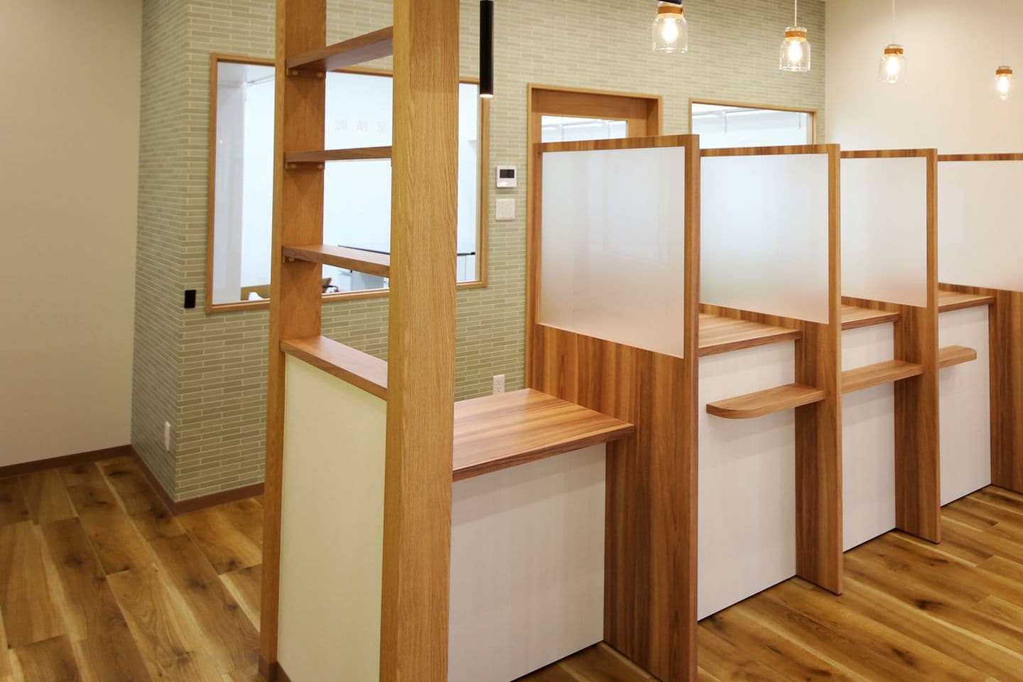 近年では、プライバシーの確保や、服薬指導のため、座って対応するスペースを設ける薬局様が増えております。