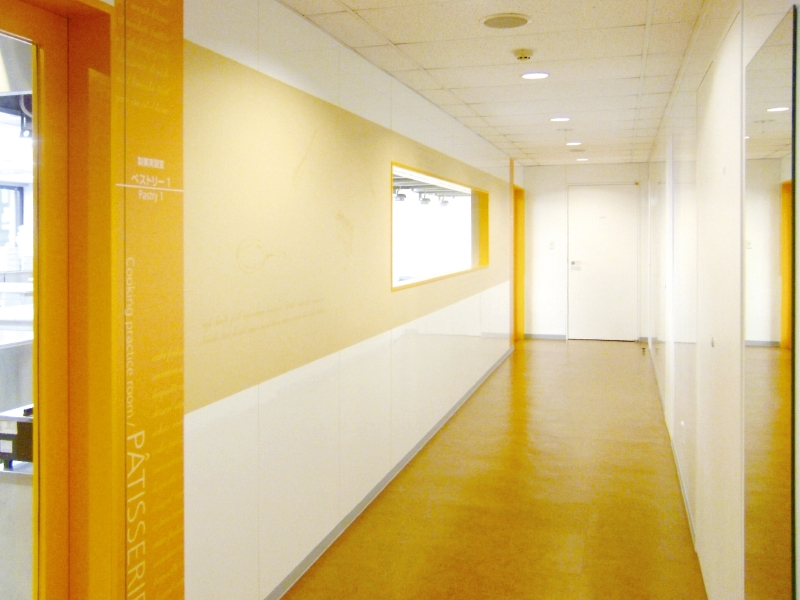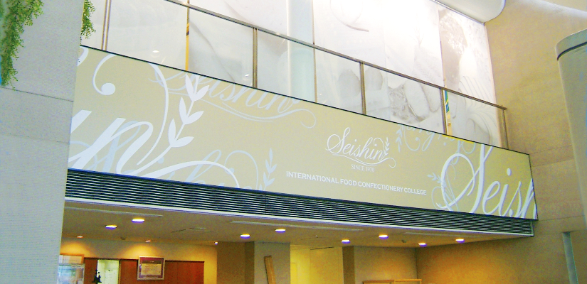 主に製菓や製パンを学ぶ専門学校のサイン計画である。