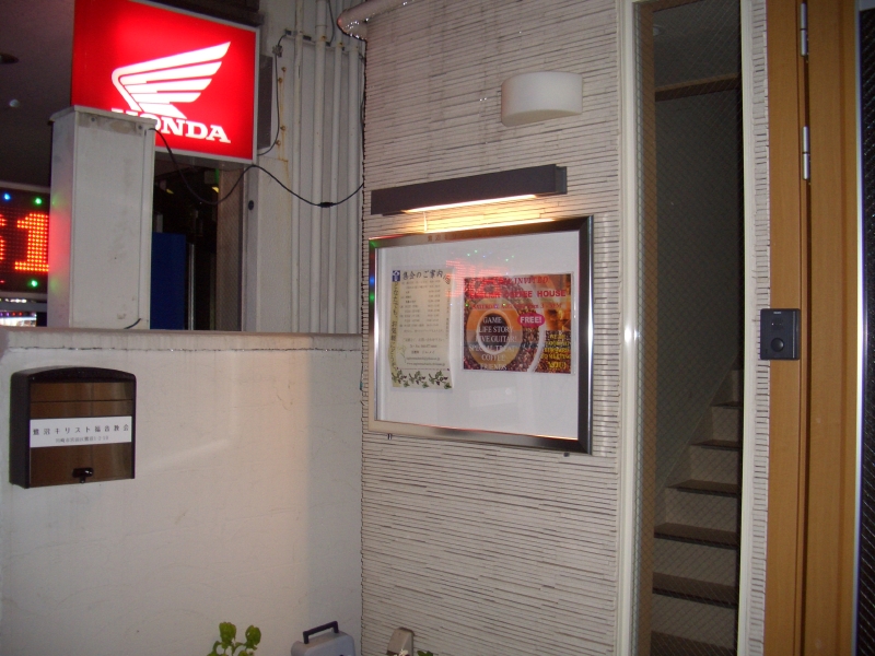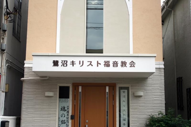 鷺沼キリスト福音教会では、エントランスの教会名称サインや掲示板を お手伝いさせていただきました。 教会の建築意匠に調和するように配慮して、書体や照明器具を選定しました。 ch0708