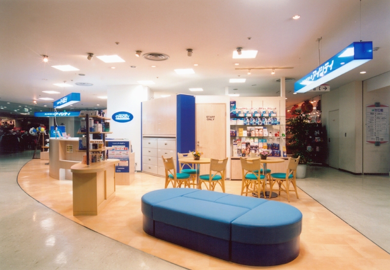 当ショップは駅ビル内のテナントショップとしてオープンしました。 フロアの中央に位置するテナントスペースに対して、四方から入店できるレイアウトと ゆとりをもった什器の配置によって、開放感ある空間に仕上がりました。 md0310