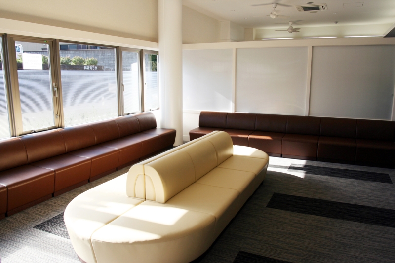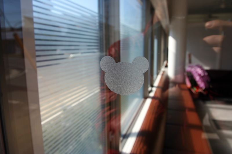 エントランスの風除室ガラスに、パンダとロゴタイプをライングラフィックで施すことで、