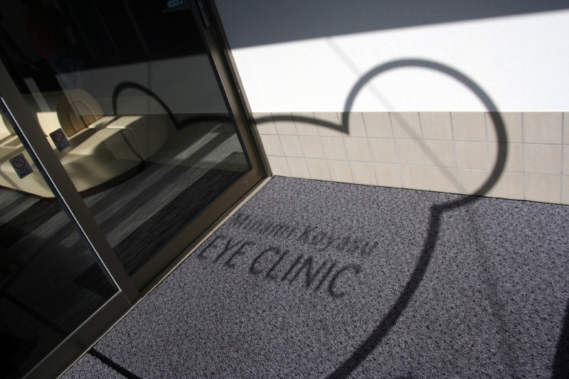 開院前後の朝日が差し込む時間帯に鮮やかなシルエットとして浮かび上がり、患者さまを