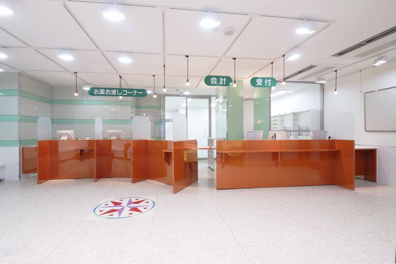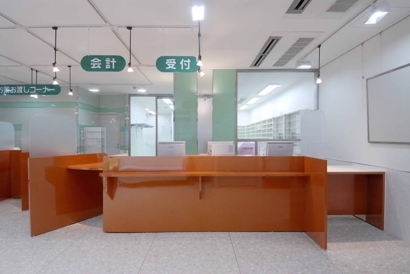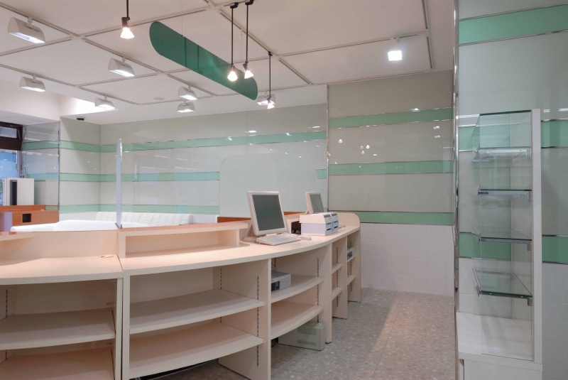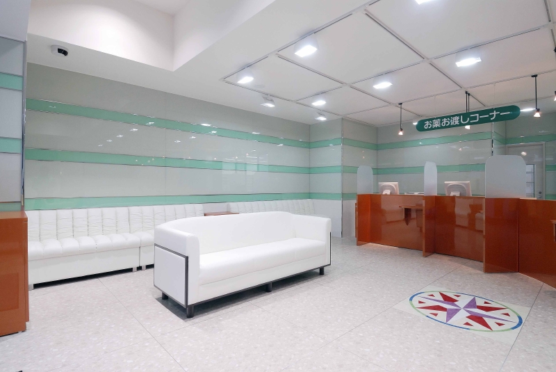 千葉県松戸市にオープンした調剤薬局の内装・サイン計画。 白を基調とした空間は、清潔感・クリアな印象を引き出すためにグロスの効いた壁装材を 使うなど、ワンランク上の素材を主張することで患者の安心につながる店舗イメージを図っている。 md1002