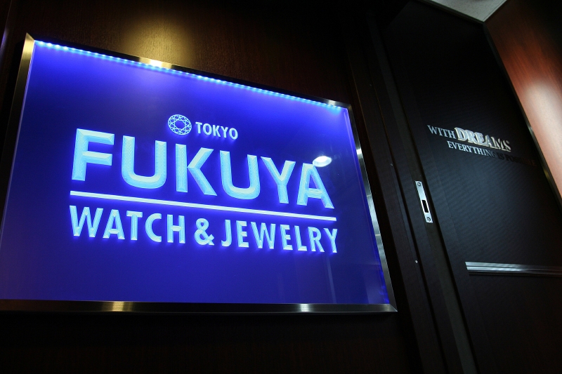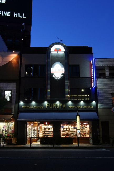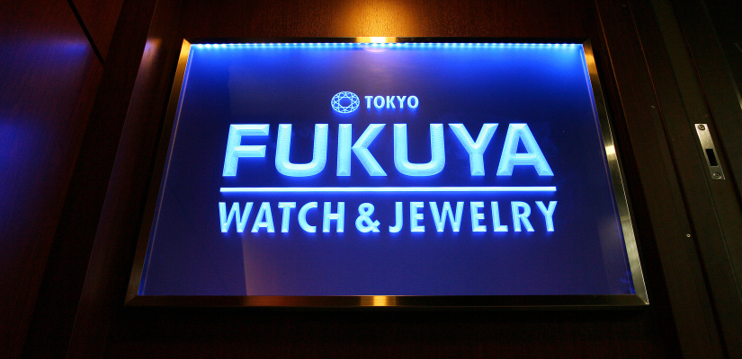 時計とジュエリーなどを扱うFUKUYA様ではファサードサイン、