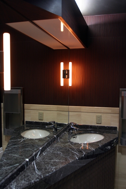 改修。黒を基調にポイントで赤を使うことで高級感を出すと共に、多くの看板が連なる