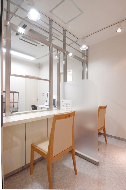 内装は白を基調とした明るいインテリアに。質屋にとって重要な防犯性を高めるために