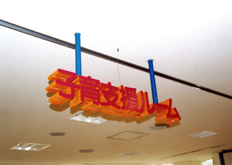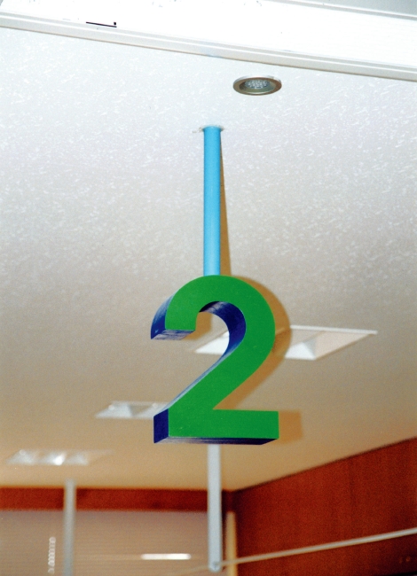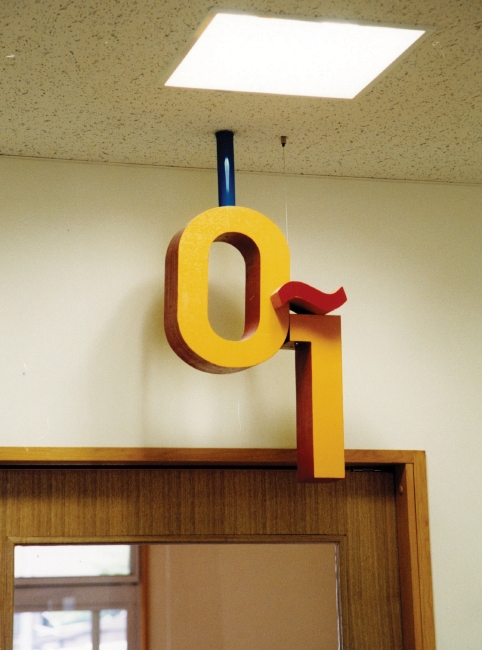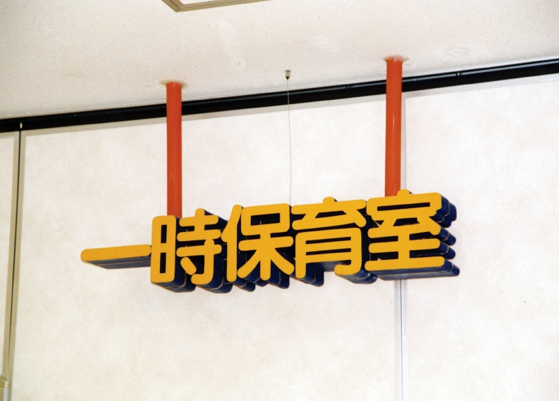 ブ ロ ッ ク ・ サ イ ン 表示内容を直接、天井から吊り下げることで、余分なもののないサインにしました。 仕様がシンプルになった分、存在感が希薄になってしまわないように、積み木(ブロック)のような、 厚みのあるごろごろとした形状をとることで、しっかりとした情報伝達とポップな楽しさを表現しています。 we0303