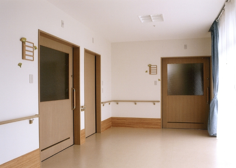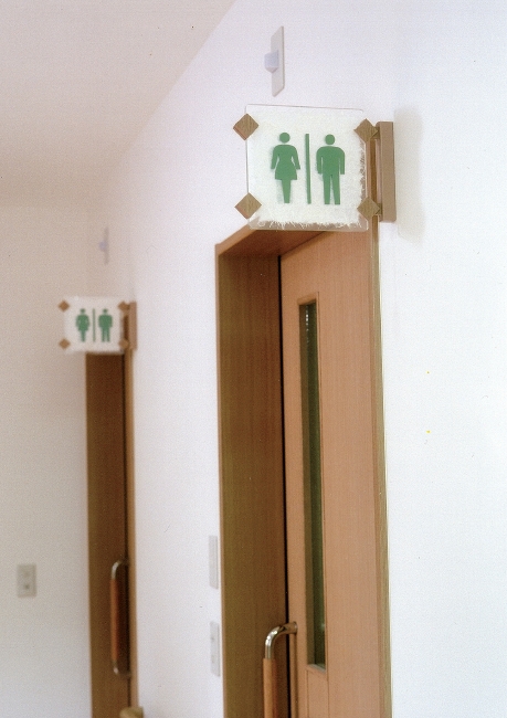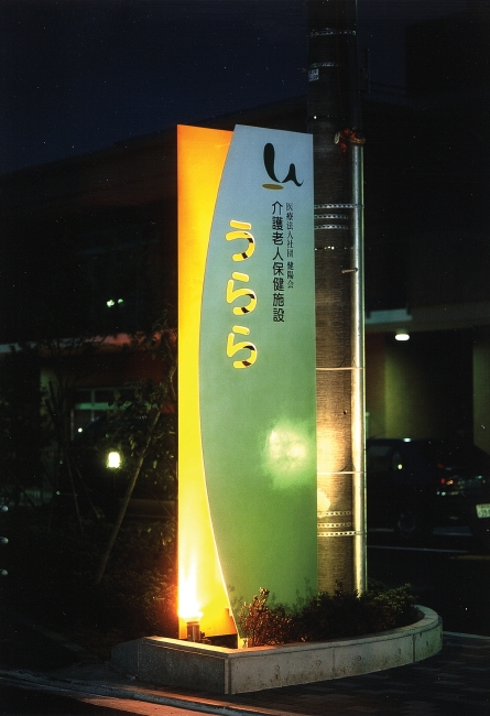 『うらら』という響きのように、柔らかく、やさしく、そこにあることが自然なサインを目指した。 二枚の板から浮かびだす光と影のかたち それぞれに紅葉したもみじといちょうが舞う通路 一枚の板から切り出した木の部品 手でちぎった和紙による表示面 結果、同じものは一つとしてなく、かといって無理矢理に全てを違えたわけではない、光や素材、 製作工程から生まれる偶然に身を任せた気負いのないサインに仕上がった。 we0203