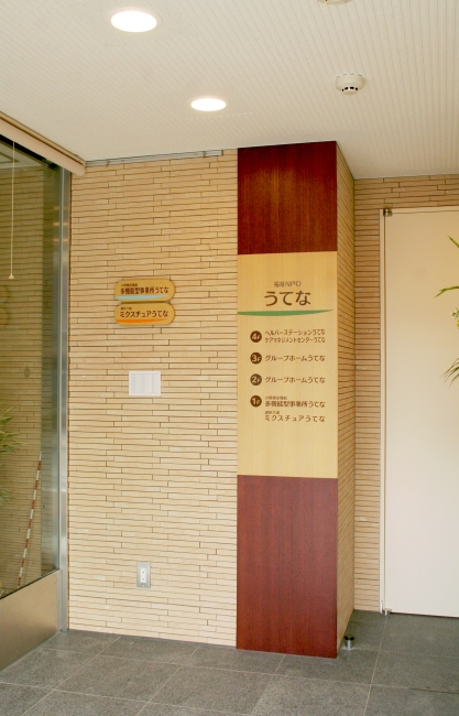 福祉NPOうてなが運営する複合介護施設のサイン計画。